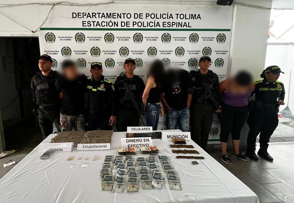 Los capturados, junto con los elementos incautados, fueron dejados a disposición de la Fiscalía 16 Seccional de Ibagué por los delitos de fabricación, tráfico, porte o tenencia de armas de fuego, accesorios, partes o municiones, y tráfico, fabricación o porte de estupefacientes. A esta hora, se encuentran siendo presentados en audiencia virtual para definir su situación jurídica.